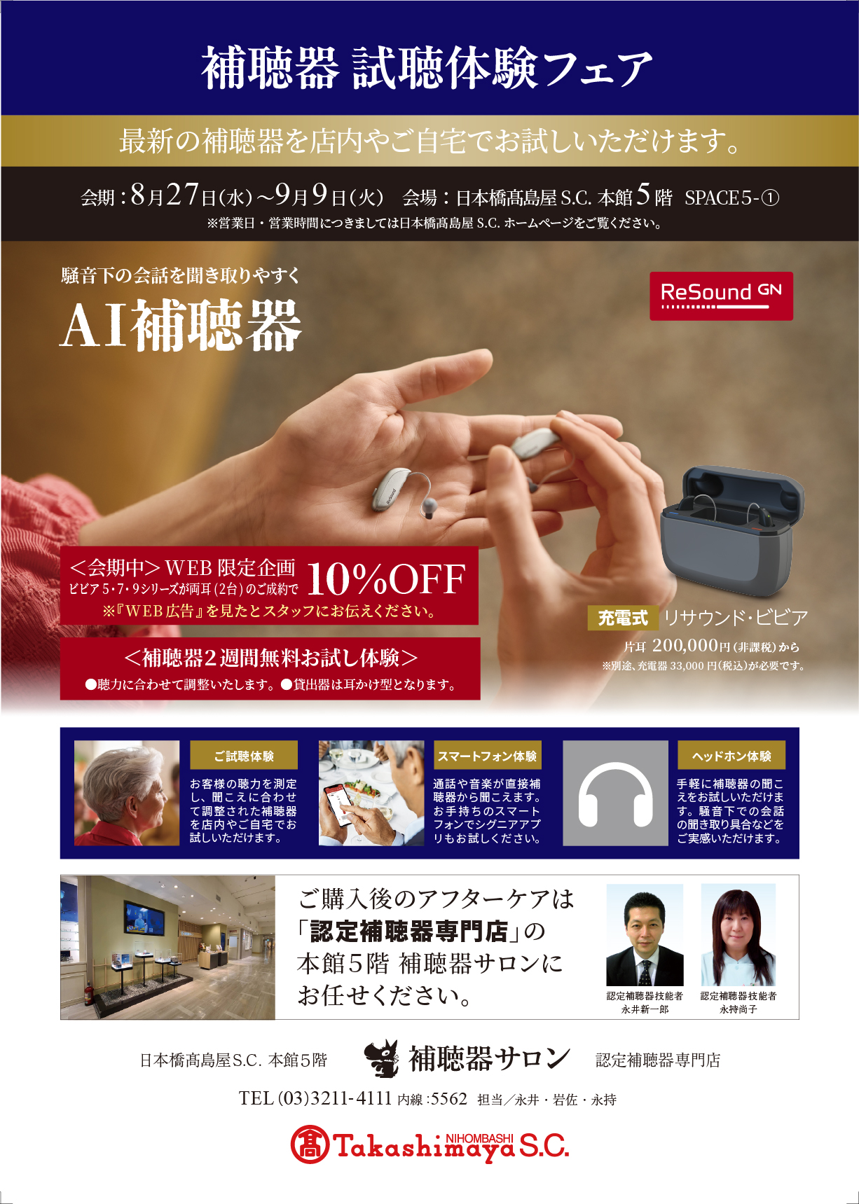 【日本橋高島屋S.C. 補聴器サロン】補聴器 試聴体験フェアのご案内