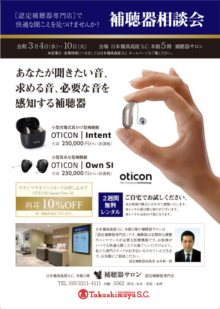 【日本橋高島屋S.C. 補聴器サロン】補聴器 試聴体験フェアのご案内